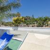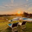 Outdoor space equipped with table and chairs and a splendid swimming pool overlooking nature