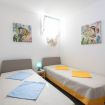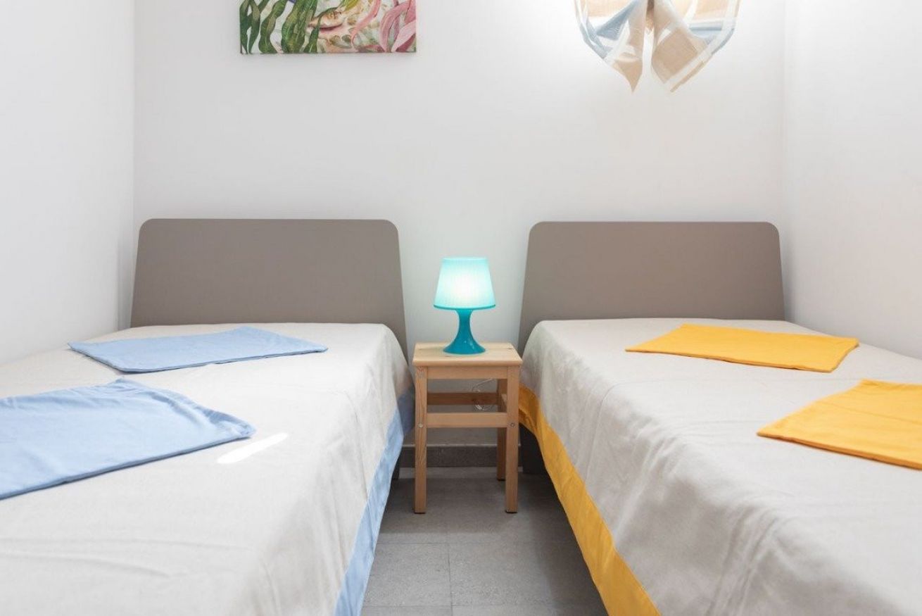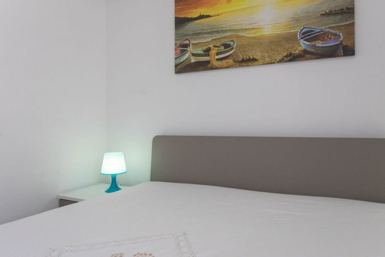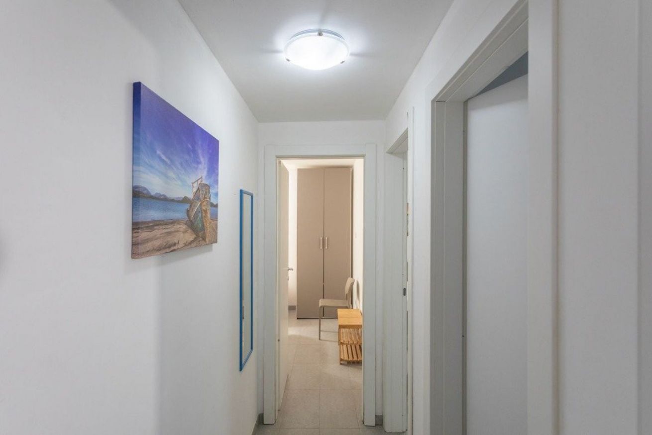 L’alloggio, situato al piano ribassato, è composto da un ampio soggiorno arredato con tavolo e sedie da pranzo, TV e zona relax con divano. La cucina è completamente attrezzata e dotata di tutto il necessario per la preparazione dei pasti. La zona notte comprende una camera da letto matrimoniale climatizzata e una camera doppia anch’essa climatizzata. Completa la soluzione un bagno con box doccia.