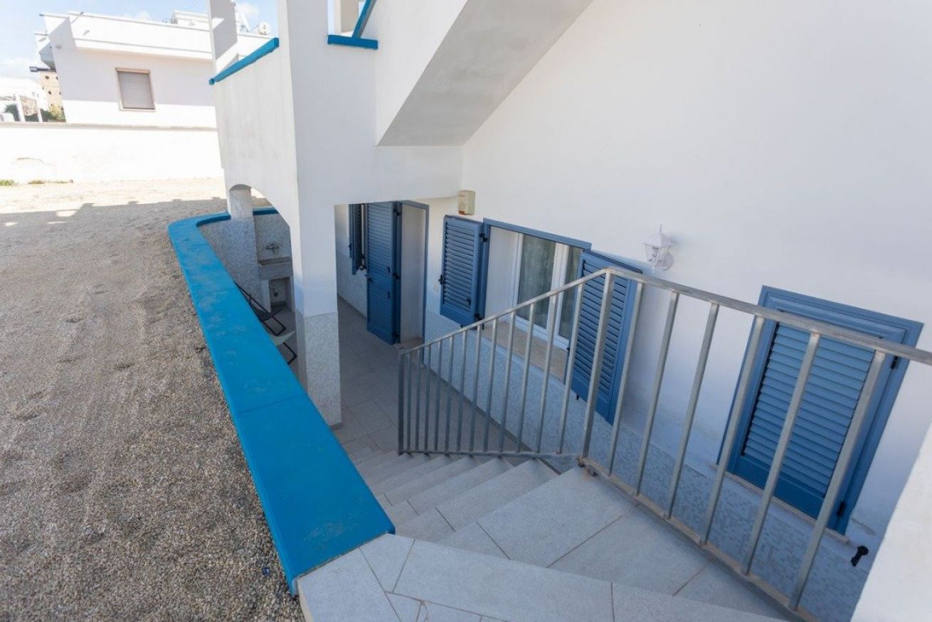 Appartamento Conca d'Oro nr. 2 si trova a marina di Mancaversa, a pochi chilometri da Gallipoli, ed è parte di una villetta bifamiliare disposta su due livelli.
