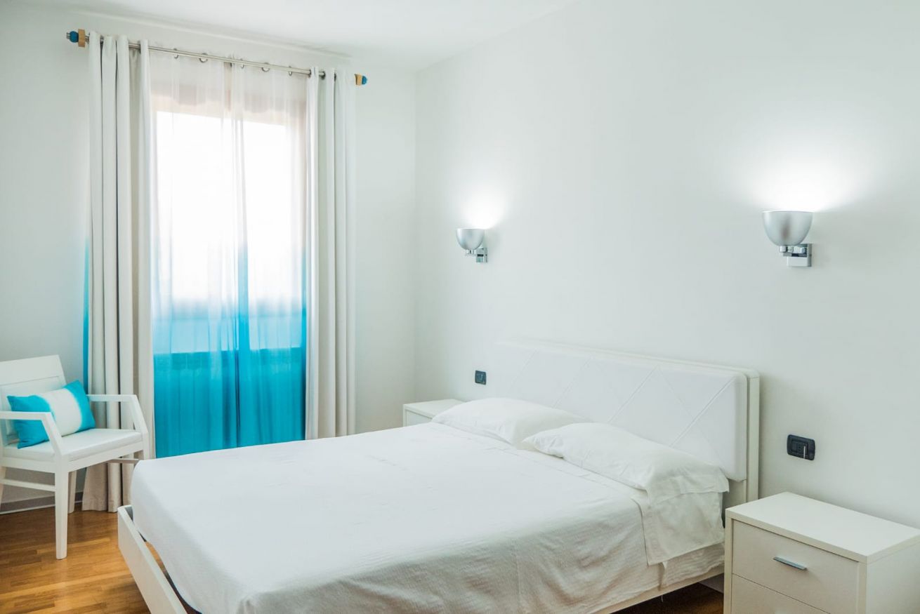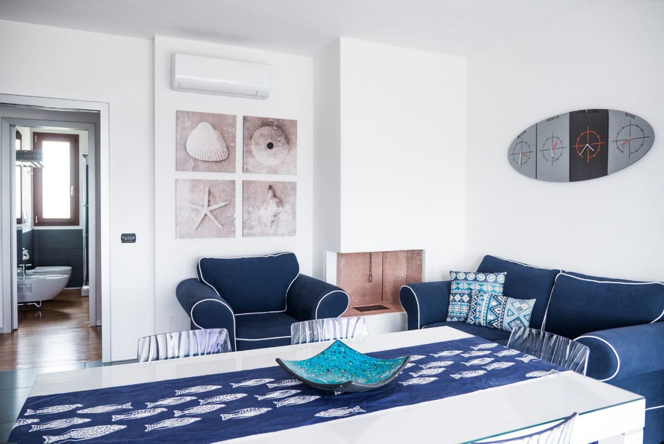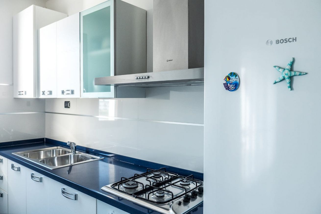 L’appartamento è dotato di ogni comfort: aria condizionata, lavatrice, doccia esterna con acqua calda e un box auto privato