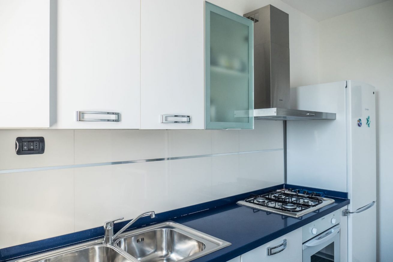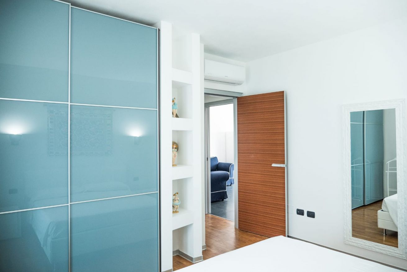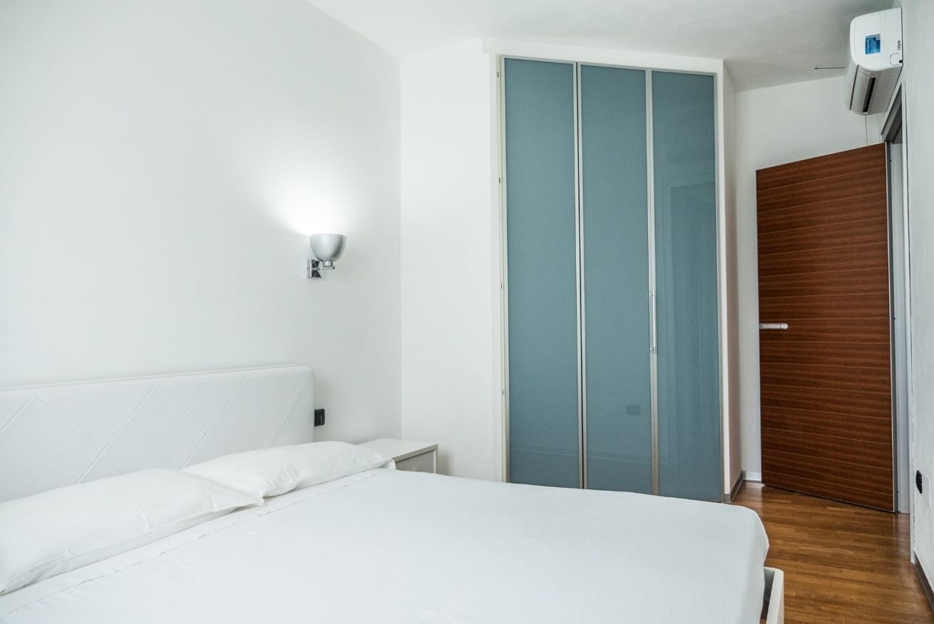 L’appartamento è dotato di ogni comfort: aria condizionata, lavatrice, doccia esterna con acqua calda e un box auto privato