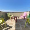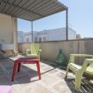 A disposizione una terrazza ombreggiata, con tavolino e sedie con vista città.