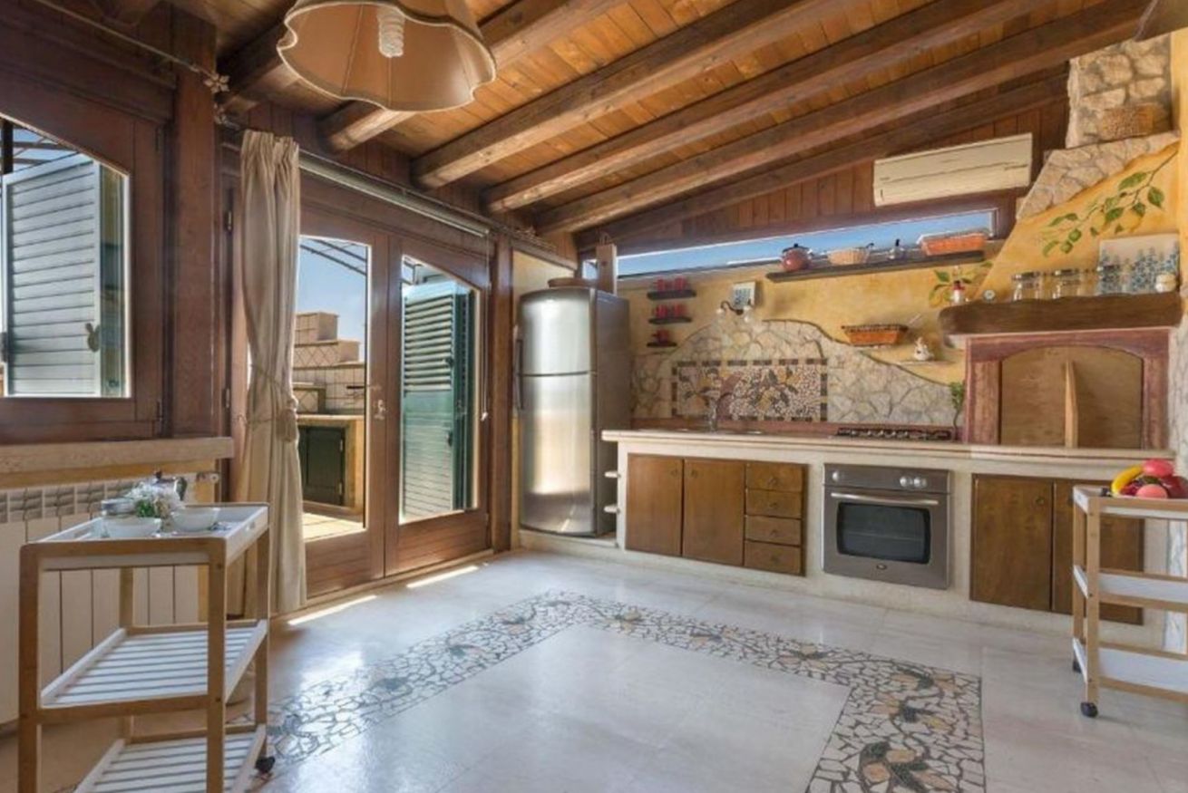 L'attico si trova all'ultimo piano ed è composto da un soggiorno con angolo cottura completamente attrezzato, un divano letto matrimoniale, una camera matrimoniale e un bagno (senza bidet) con box doccia.
