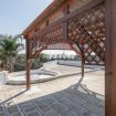una veranda attrezzata coperta con mobili da giardino e barbecue a carbone;