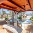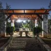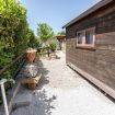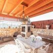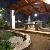 un ampio giardino attrezzato con zona pranzo coperta dotata di camino, un'ulteriore zona pranzo o relax- lettura, area giochi attrezzata per i più piccoli.