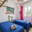 La villa è composta da tre camere da letto climatizzate, di cui una matrimoniale, una doppia e una camera con letto matrimoniale + letto singolo.