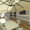 Cucina attrezzata all'interno con angolo cottura, televisione frigorifero, cucina attrezzata all'esterno con forno, ideale per i pranzi e le cene all'aperto.
